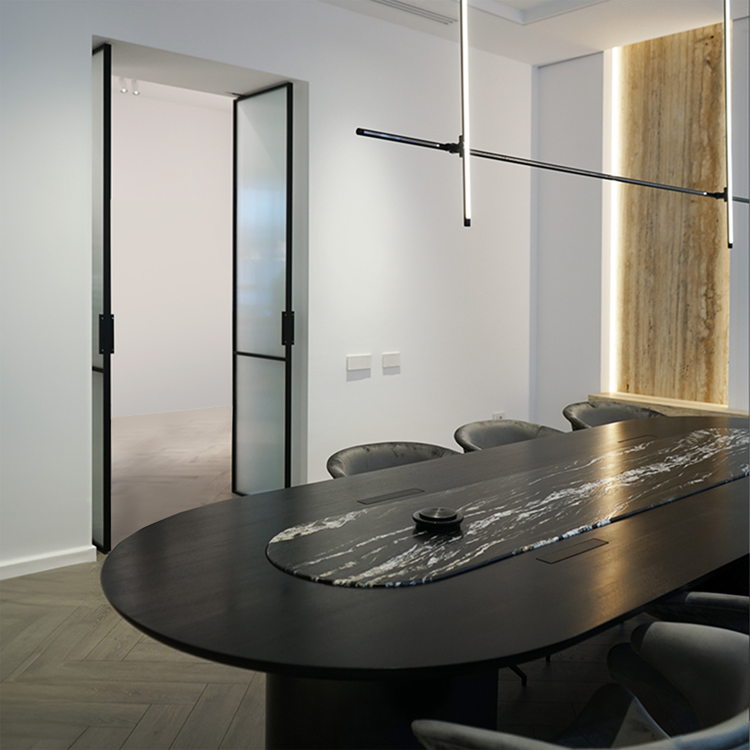 Eleganța într-o sală de ședință devine mai accentuată datorită ușilor pivotante. Ergonomia se realizează prin deschiderea în ambele sensuri, cu posibilitatea fixării la 90 de grade, sau revenirii lente în poziția de închis.